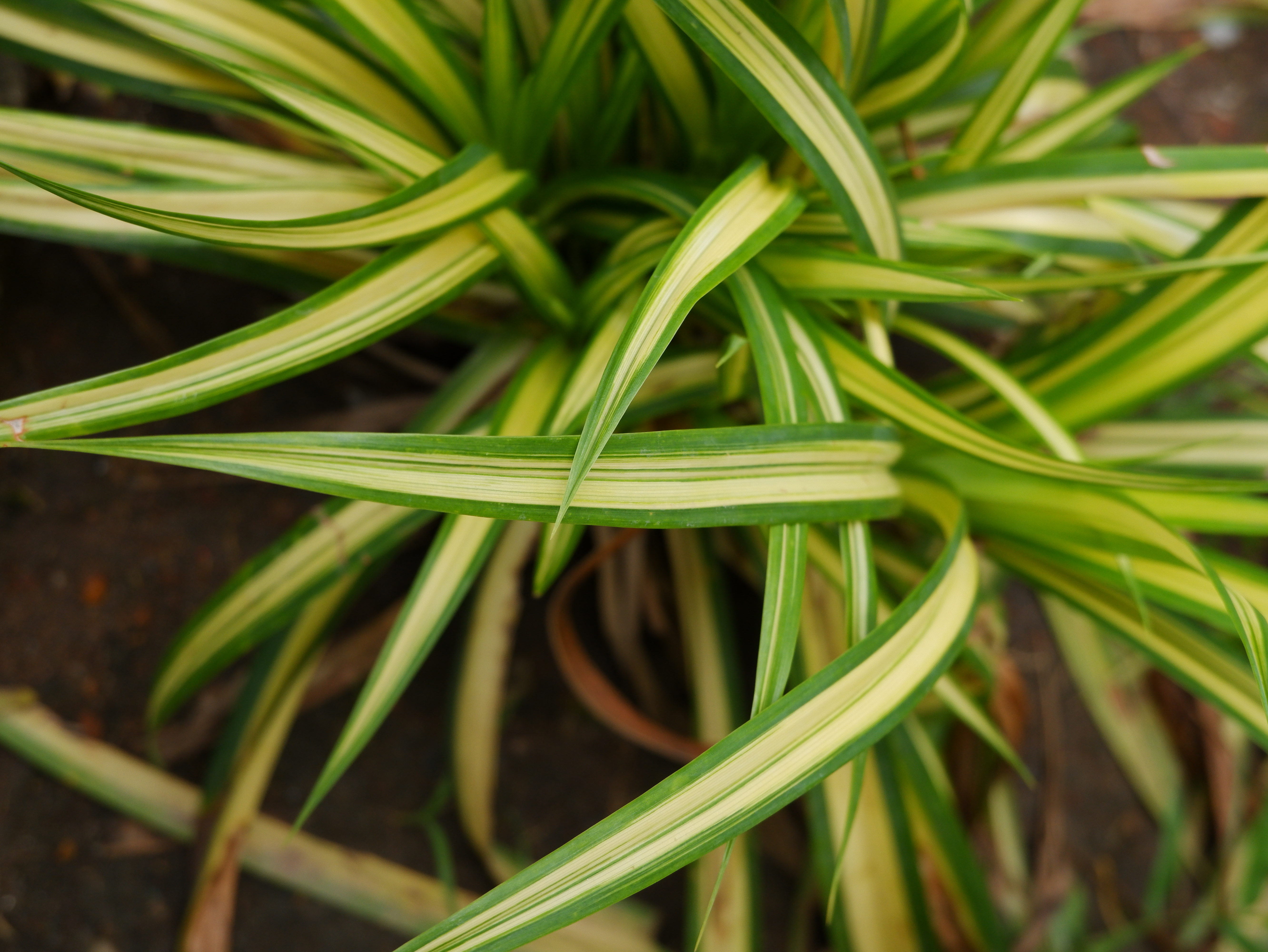 ลักษณะเด่น: ใบเดี่ยว ออกจากลำต้น เวียนติดกันแน่น ขอบใบมีสีเขียว เรียวยาว