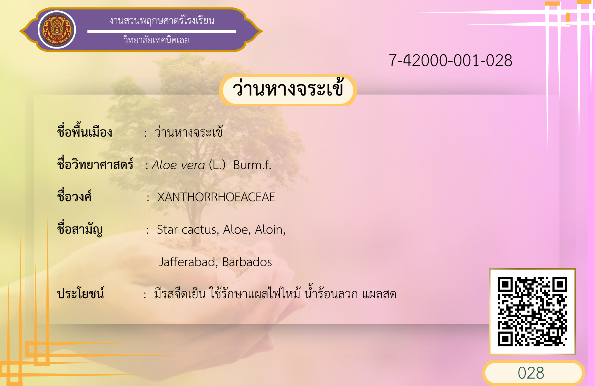ชื่อวิทยาศาสตร์: Aloe vera (L.) Burm.f.