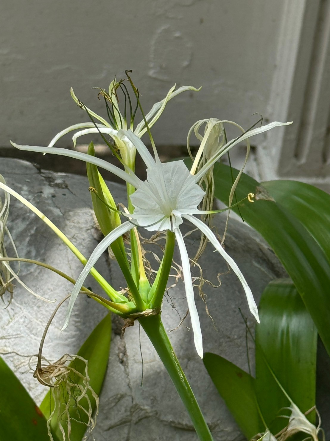 ลักษณะเด่น: หัวใต้ดิน ลำต้นกลม ใบแตกหน่อซ้อนกัน ใบอวบน้ำ ดอกสีขาว