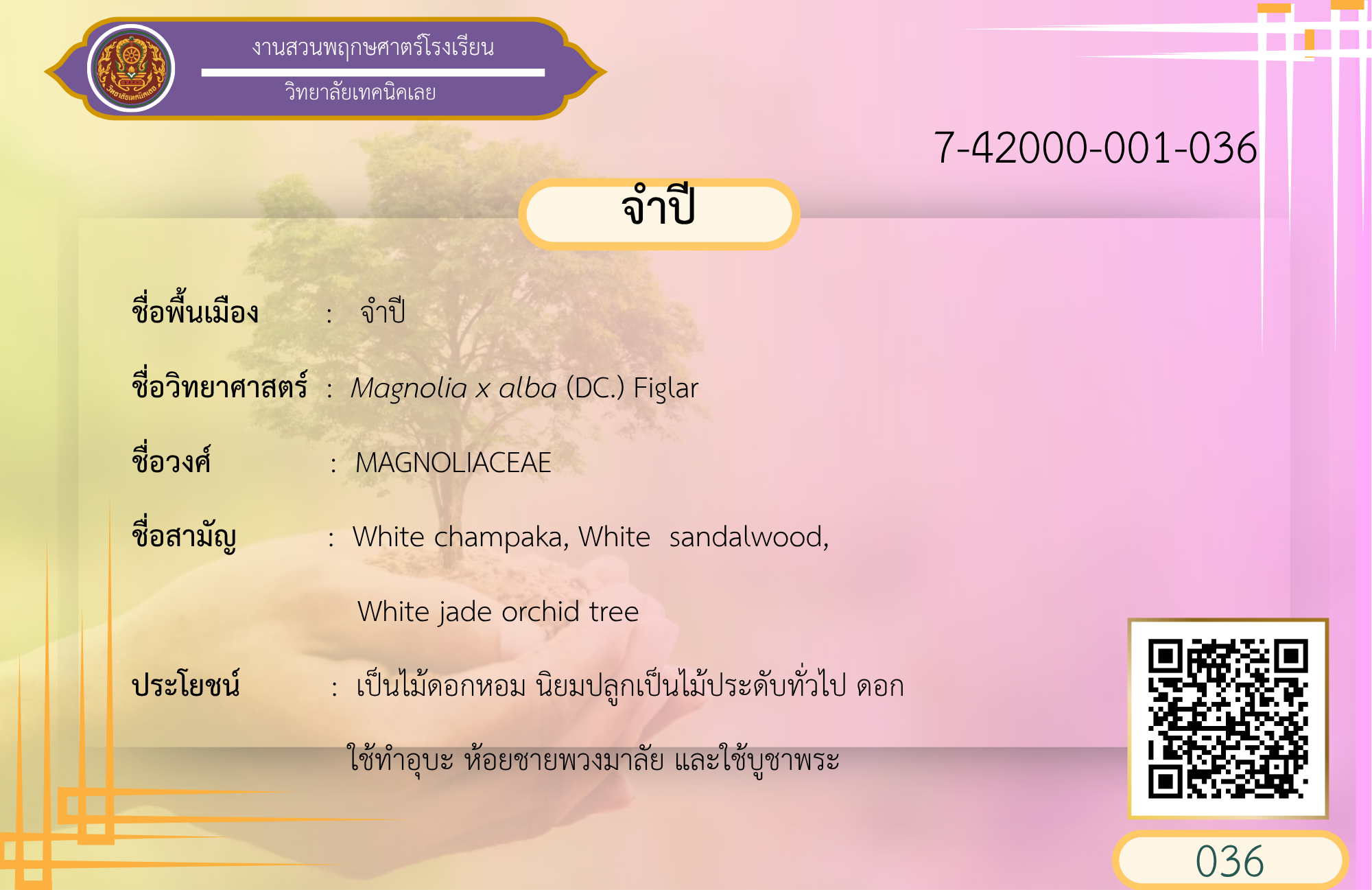 ชื่อวิทยาศาสตร์: Magnolia x alba (DC.) Figlar