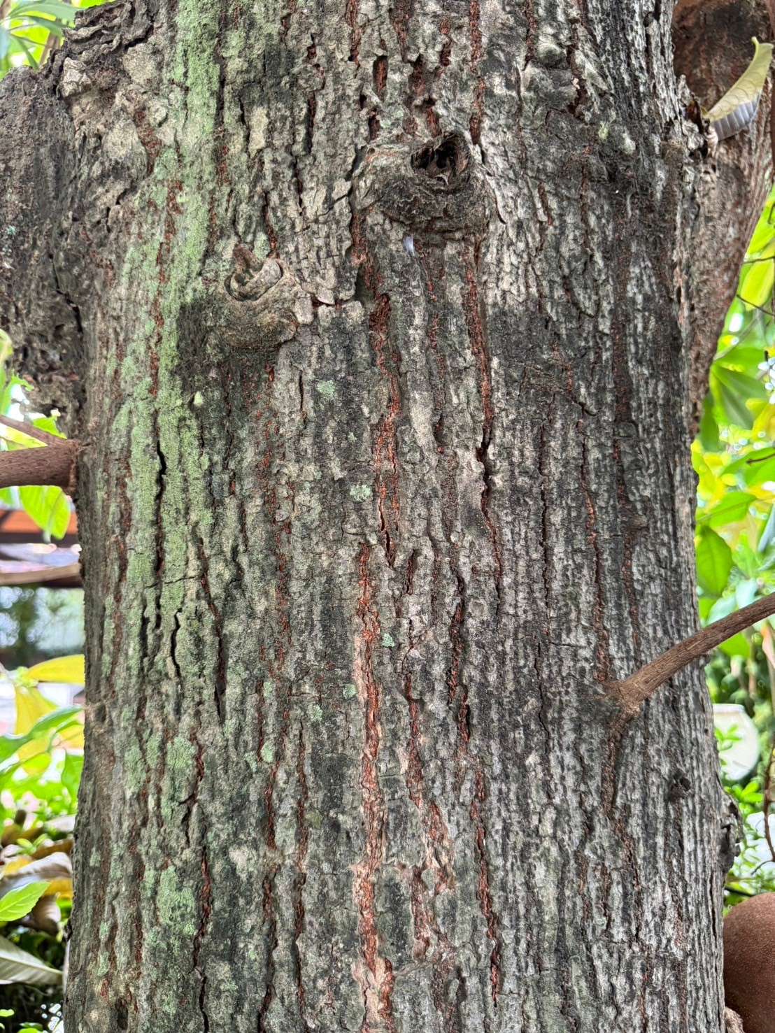 ลักษณะเด่น: ลำต้นสูง ใหญ่ เปลือลำต้นสีน้ำตาล แตกเป็นร่อง ผลกลมใหญ่ สีน้ำตาล ดอกดอกสีขมพูแกมแดง