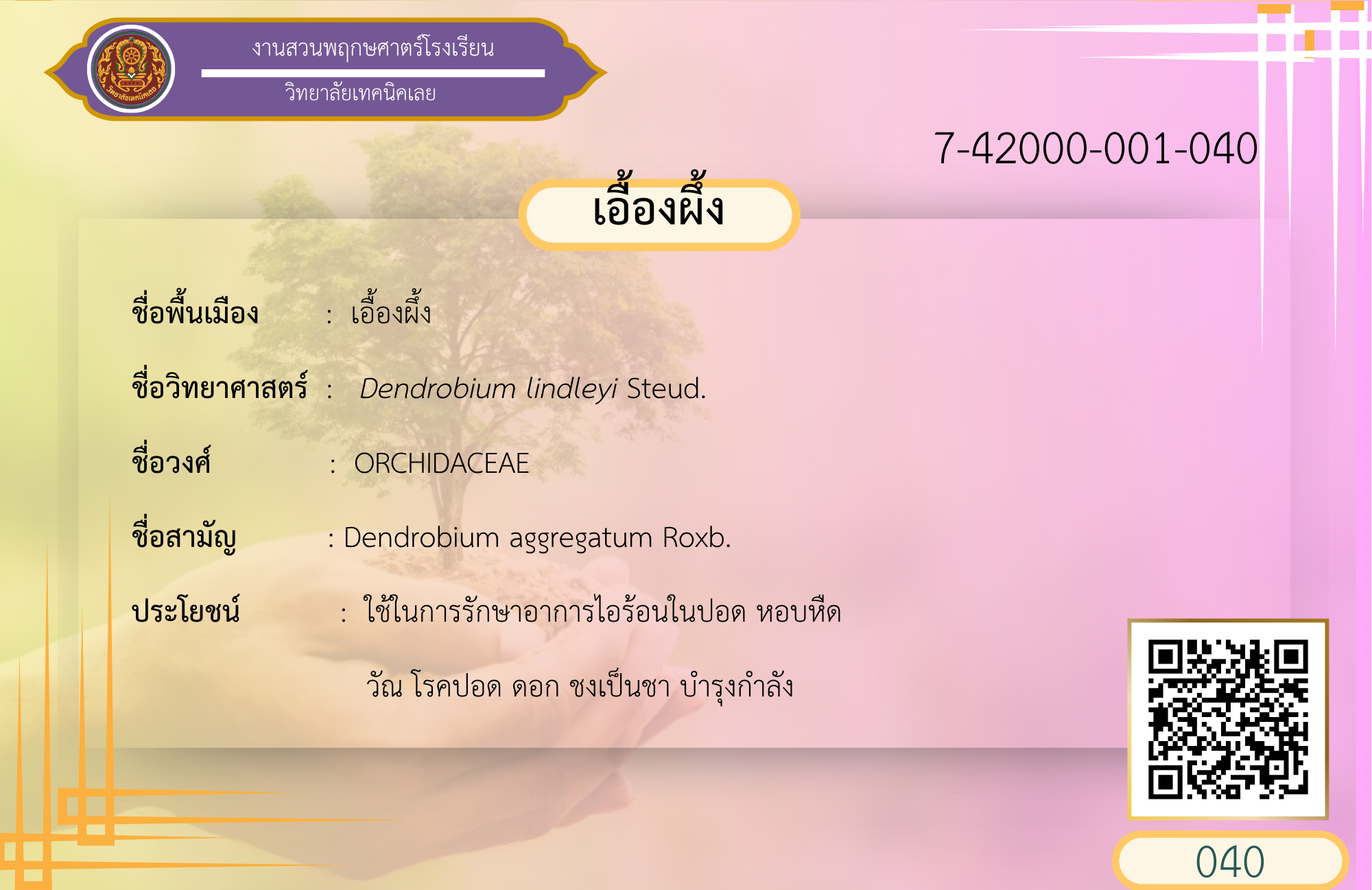 ชื่อวิทยาศาสตร์: Dendrobium lindleyi Steud.