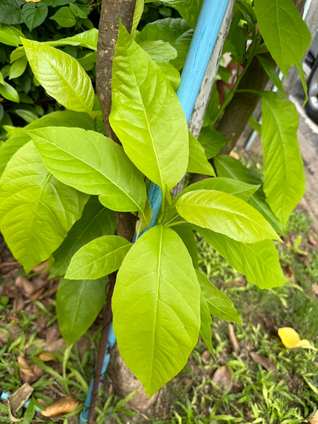 ลักษณะเด่น: ใบเดียว ปลายใบแหลม ใบอ่อนสีเขียวอ่อน ลำต้นสีขาวเทา ลำต้นเรียบ