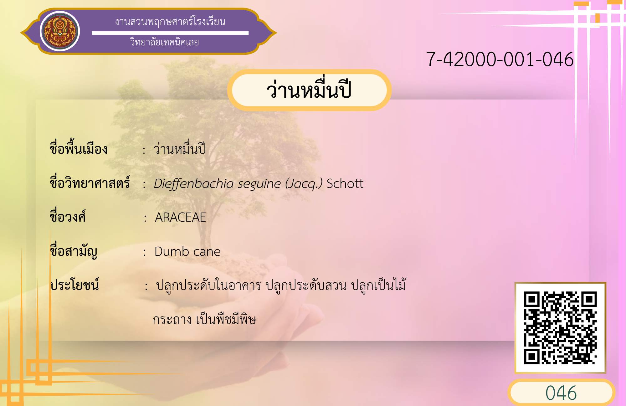 ชื่อวิทยาศาสตร์: Dieffenbachia seguine (Jacq.) Schott
